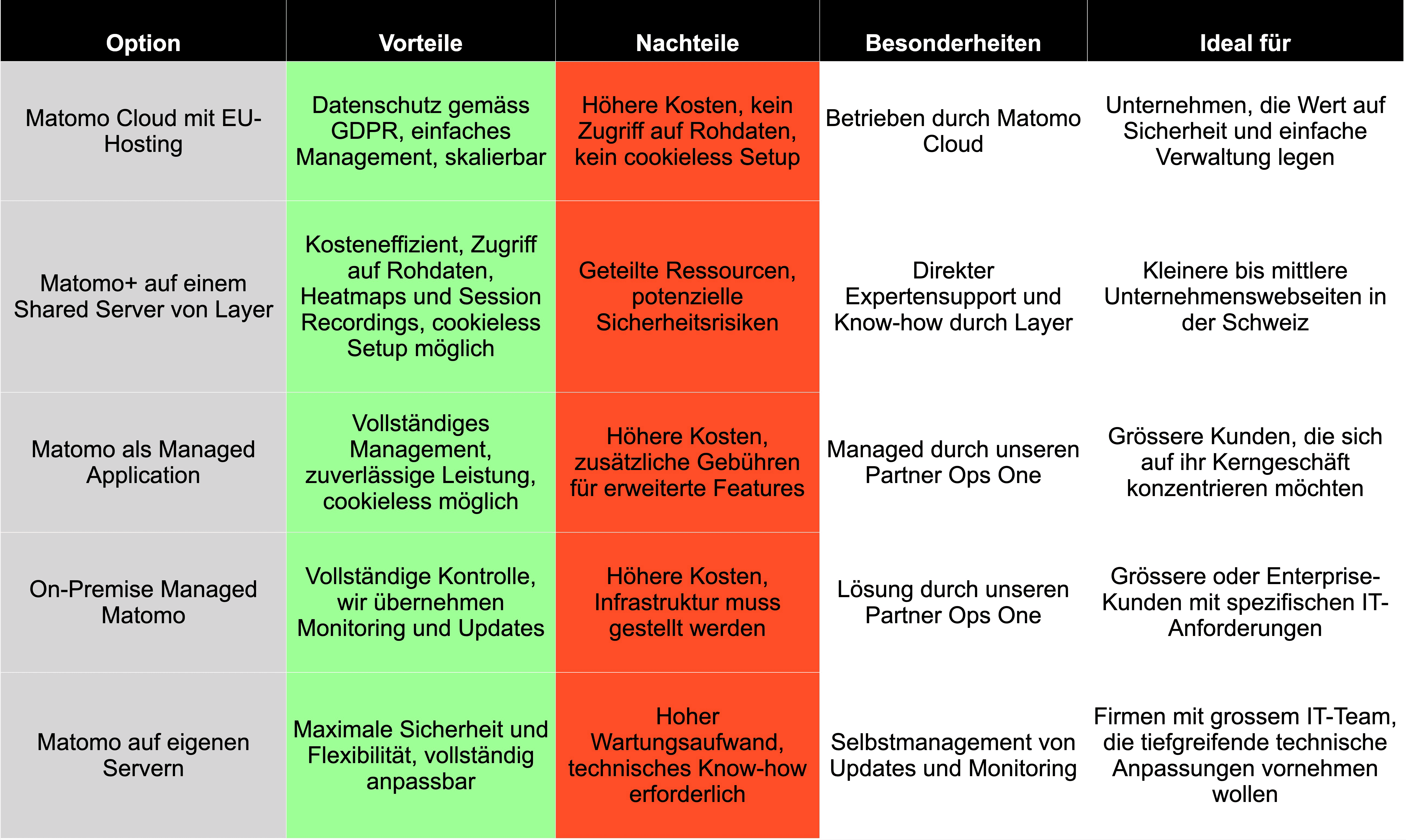 Vergleich der Matomo-Hosting-Optionen